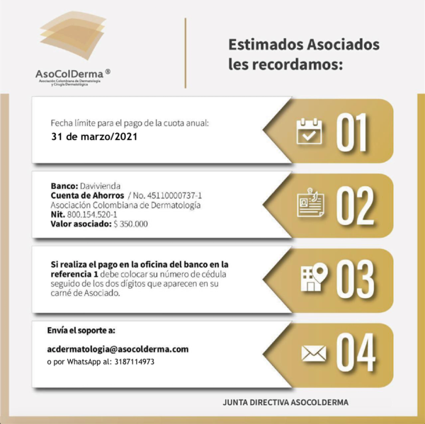 El grupo editorial de la página WEB ASOCOLDERMA siempre está abierto a nuevas ideas y quisiéramos escucharlos. ¿Te interesa participar elaborando contenido?¿tienes alguna opinión frente a que te gustaría (o que no te gusta) leer en la página?. Escríbenos a