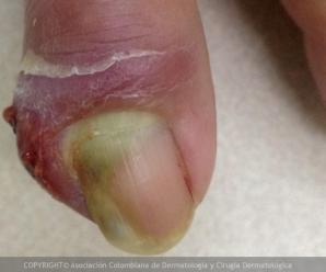 Es una infección aguda del área de la cutícula o alrededor de la uña, secundaria a la entrada de bacterias como Staphylococos o Streptococos, que ingresan a la piel por traumas como morderse o arrancarse los uñeros (onicotilomania), o por cortarse o retraerse la cutícula.